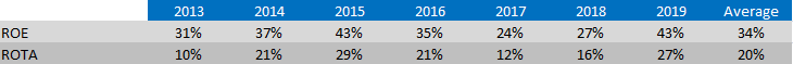 All investors like a company with high Return on Equity (ROE) and Return on Total Asset (ROTA). Over the last 7 years, Bauto has recorded an average ROE of 34% and ROTA of 20%. Its high % return indicates the business is of high quality, but the fact that this was achieved without leverage (see point 3) is truly impressive.