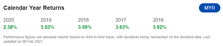 - Top holdings as at 31 Dec 2020: Ambank Islamic Bhd, Kuwait Finance House Bhd, CIMB Islamic Bank Bhd